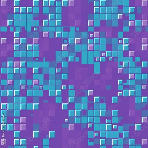 Fototapeta premium Abstract Purple and Teal Square Pattern: A vibrant, seamless pattern featuring an array of teal and purple squares, creating a dynamic and modern design. Ideal for backgrounds, textures.