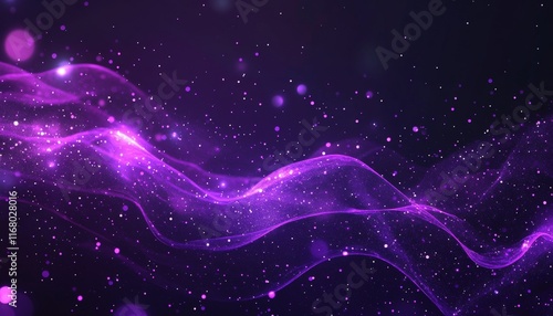 Fototapeta premium Abstract Purple Cosmic Wave Background with Glowing Particles and Stardust
