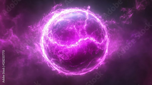 © Sleeping Carbuncle, Obraz premium Abstract Purple Energy Sphere in Dark Cosmic Nebula Space Illustration