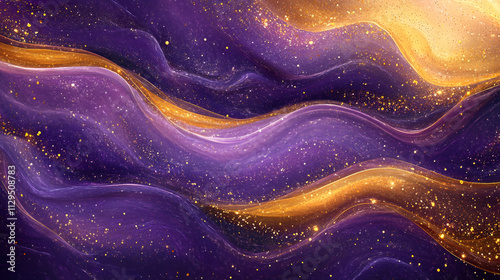 © Lale, Obraz premium Abstract Purple Gold Glitter Waves Luxury Background Texture