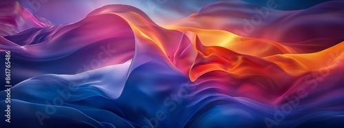 © olegganko, Obraz premium Abstract Purple, Orange, and Blue Fabric Waves