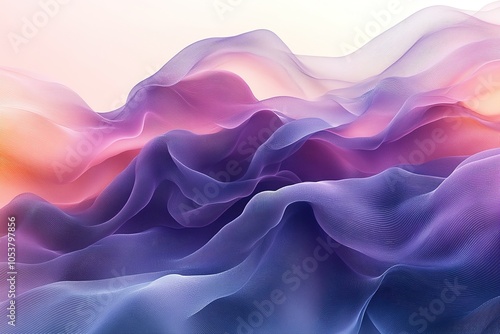 © CahPapat, Fototapeta premium Abstract purple, pink, and blue flowing wave pattern on white background.
