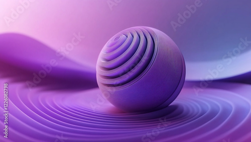 Obraz premium Abstract purple sphere resting on flowing waves, creating a serene atmosphere...