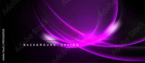 Fototapeta premium Abstract purple waves flow across black space. Dynamic curves create modern design, elegant visual impact. Minimal text present.
