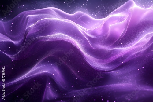 Obraz premium Abstract purple waves with sparkling particles floating in a dark and dreamy background space scene