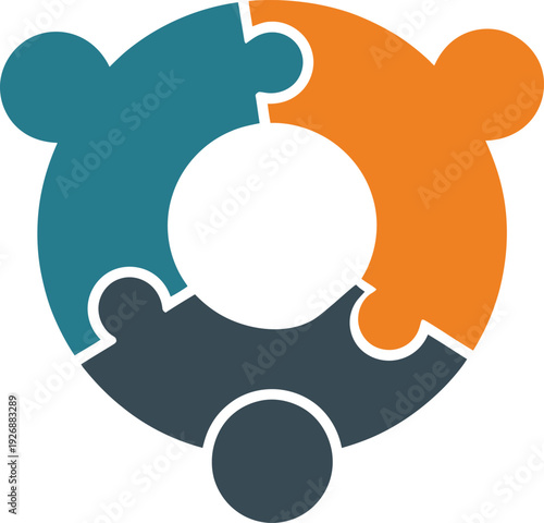 © Ajmena, Fototapeta premium Abstract Puzzle Piece People Logo Representing Unity Collaboration and Problem Solving Success