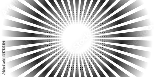 Fototapeta premium Abstract Radial Burst Monochrome Graphic Design. Retro grayscale sun rays...