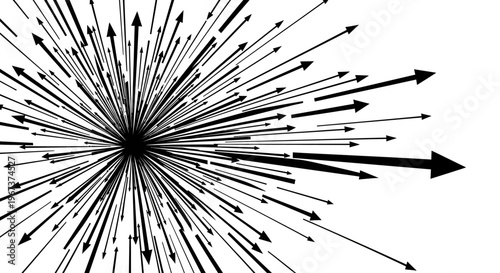 © Zamiel, Obraz premium Abstract radial explosion of black arrows creating a starburst effect, isolated white background.