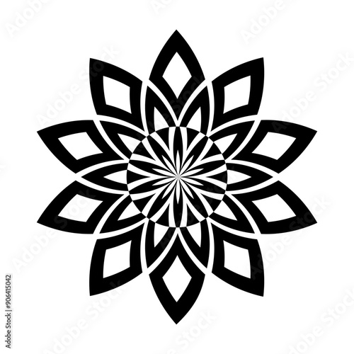 © troyka, Obraz premium Abstract Radial Geometric Circle Floral Pattern. Decorative Round Design Element.