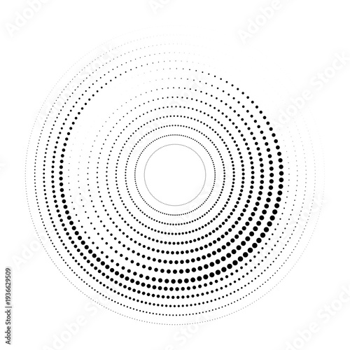 Fototapeta premium Abstract Radial Halftone Dot Gradient Forming Dynamic Circular Dispersion Wave Pattern Design Element