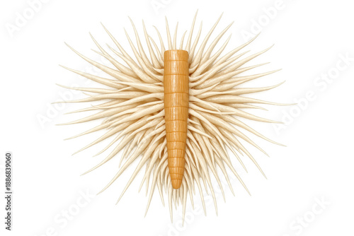 Obraz premium Abstract radial pattern of sharp, light brown, spiky elements emanating from a central segmented rod