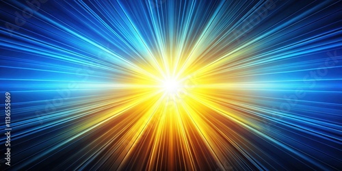 © Collection, Obraz premium Abstract Radiating Light Burst Dynamic Blue and Gold Energy Beams Converging at a Bright Center