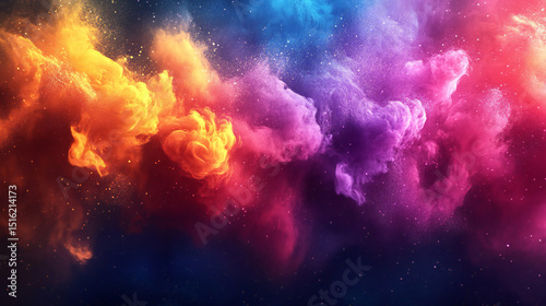 © HA THOLIYA, Fototapeta premium Abstract rainbow color ink splatter swirl background, fantasy flower texture watercolor illustration of paint brush stroke explosion, modern vibrant powder motion 3d digital artwork holiday wallpaper