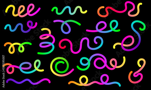 Fototapeta premium Abstract rainbow color, wavy lines set. Squiggly shape bright color elements...