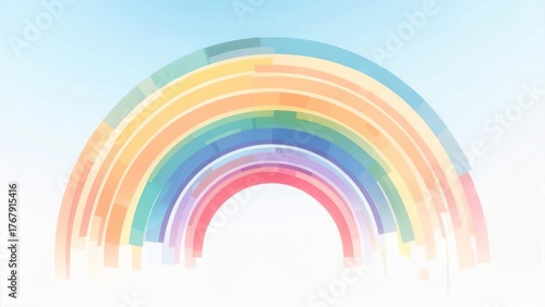Fototapeta premium Abstract rainbow design with colorful arcs against a gradient blue sky background