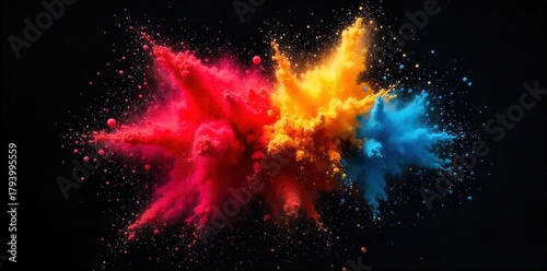 Obraz premium Abstract Rainbow Explosion of Powder An extremely high resolution, macro photograph of a chaotic explosion of vibrant, powdered pigments. The colors are a full spectrum rainbow, erupting outwards from