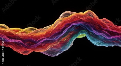 Fototapeta premium Abstract Rainbow Flow: A vibrant, abstract image showcasing a flowing stream of colorful threads, creating a dynamic and mesmerizing display. The iridescent hues dance across the dark background.