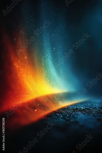 © Georgii, Fototapeta premium Abstract rainbow glow on dark surface with droplets and neon light, creating a dreamlike atmosphere