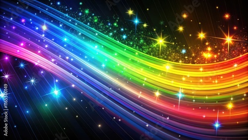 Fototapeta premium Abstract Rainbow Light Lines Stars Black Background