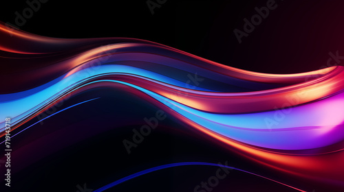 © Valeriia, Fototapeta premium Abstract Rainbow Neon Holographic Wavy Silk Texture Textile Dark Background for Presentations HD Wallpapers PC