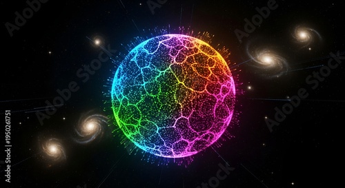Obraz premium Abstract Rainbow Sphere in Cosmic Galaxy Background with Stars and Nebulas