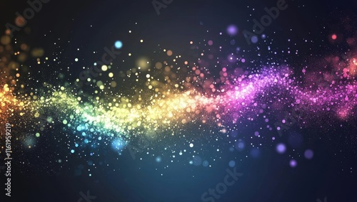 © POV Studio, Fototapeta premium Abstract rainbow wave of colorful particles and glittering lights on dark background.