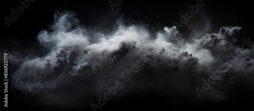 © meristock, Obraz premium Abstract real dust floating over black background.