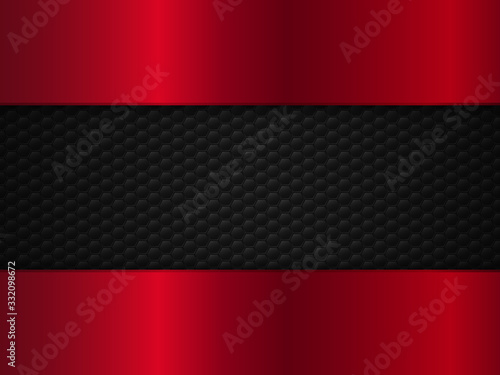 © Mr.Vander, Naklejka premium Abstract red and black metal background with hexagons. Vector illustration