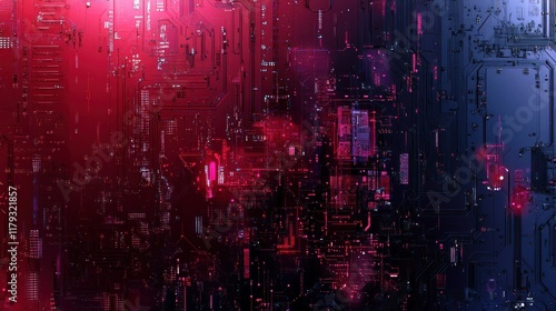 Obraz premium Abstract red and blue circuit board texture with glowing elements.