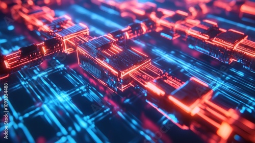 © mOuntase graphic, Obraz premium Abstract red and blue glowing digital network.