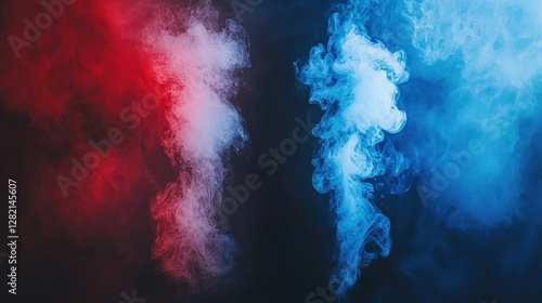 © mlangsen, Naklejka premium Abstract red and blue smoke swirls in dark background for wallpaper and design