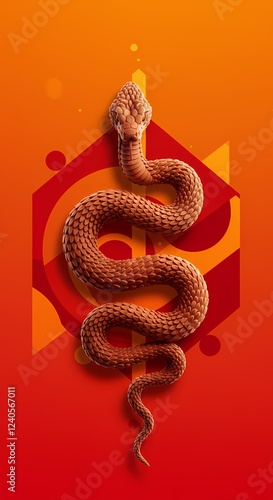 © thoif, Fototapeta premium Abstract Red and Orange Geometric Background with a 3D Copper Snake