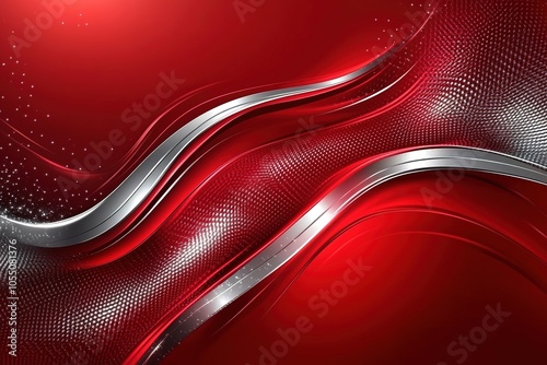 © CahPapat, Obraz premium Abstract red and silver wavy background.