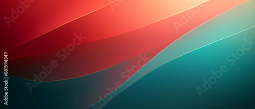 Fototapeta premium Abstract red and teal gradient background with wavy lines and copy space, ideal for modern and creative design projects.