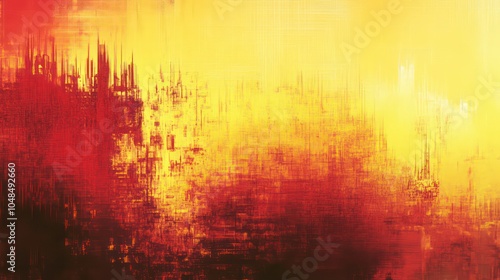 © thenort, Obraz premium Abstract red and yellow textured background with a blurred cityscape in the distance.