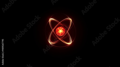 Fototapeta premium Abstract red atomic structure energy science background illustration hot fire dark orbit light power