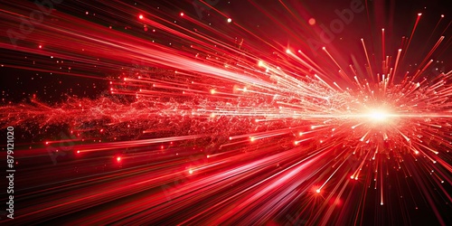 Fototapeta premium Abstract red background with dynamic speed lines and an explosion of fragmented red particles, abstract, red