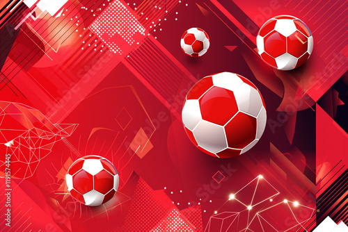 Obraz premium Abstract Red Background with Soccer Balls and Hexagonal Shapes for a Modern...