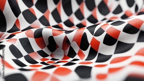 © mur, Obraz premium Abstract red, black, white wavy textile pattern.