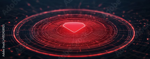 © WinThing, Obraz premium Abstract red diamond shape with digital patterns on a dark background.