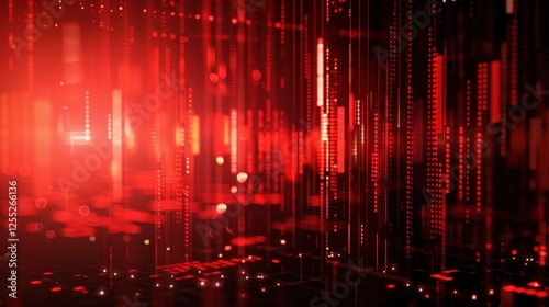 Obraz premium Abstract Red Digital Data Stream: Futuristic Technology Background