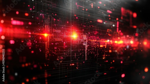 © Muamanah, Fototapeta premium Abstract Red Digital Network: Glowing Data Streams and Connections