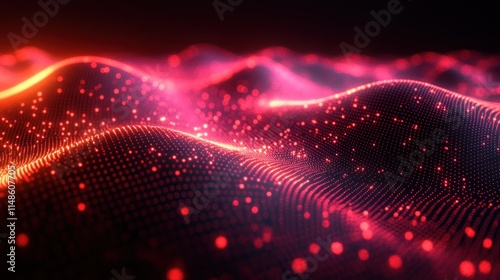 © Bejo Studio, Obraz premium Abstract red digital wave particles background.