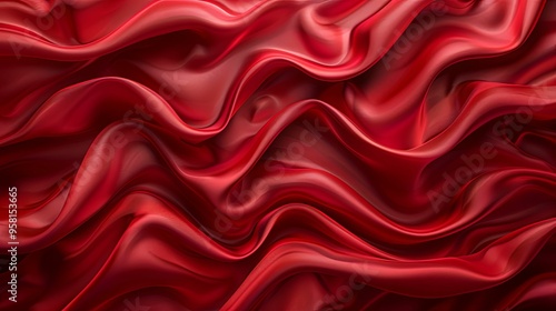© Arieswanto, Obraz premium Abstract Red Draped Fabric Texture with Wavy Lines