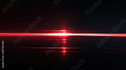 Obraz premium Abstract red laser light streak on a black background, representing speed, innovation, and modern technology.
