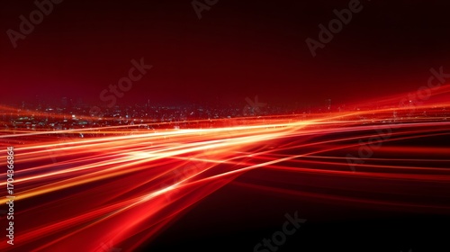 © Pickoloh, Obraz premium Abstract red light trails with glowing particles on a dark black background