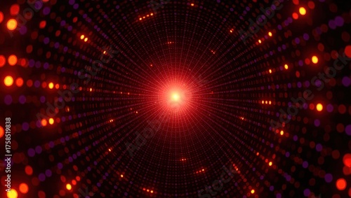 Obraz premium Abstract Red Light Tunnel - Futuristic Data Stream Visualization.
