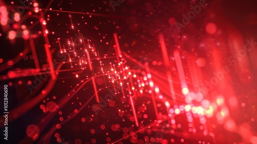 Obraz premium Abstract Red Lines and Glowing Particles