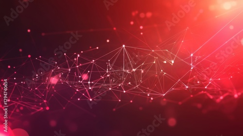 Fototapeta premium Abstract Red Network Background with Glowing Points and Lines