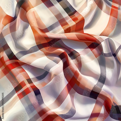 Fototapeta premium Abstract Red, Orange, and Black Plaid Fabric